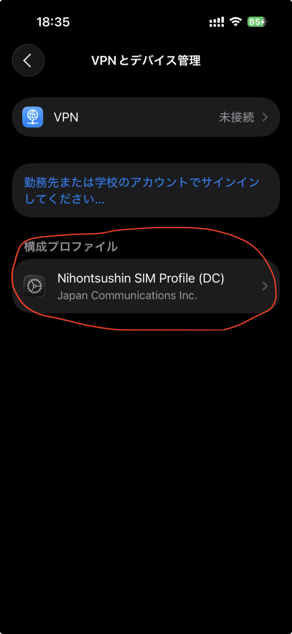- もしそこに、日本の格安SIM会社の「構成プロファイル」があったら、それを削除してください。