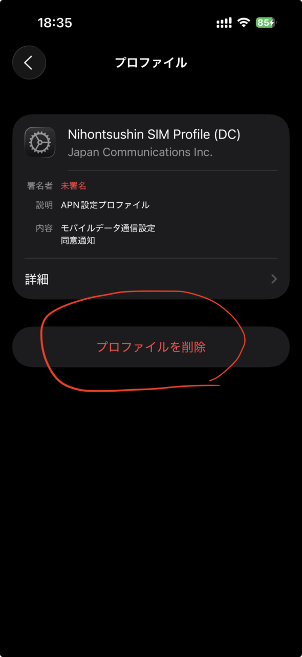 - 日本の格安SIMの「構成プロファイル」を削除する